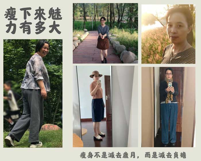 以前胖得喘不過氣,買衣服只能挑最大碼還緊繃,走幾步路就累癱,自卑到不敢抬頭。吃了瘦身茶包後,終於能輕鬆穿上喜歡的裙子,走路帶風,人也自信開朗,感覺重獲新生,身邊的朋友也説我年輕了許多。